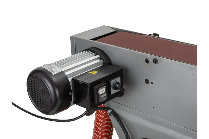 При шлифовании на этом станке возможно образование больших объемов пыли и стружки. Для их эффективного отведения предусмотрен встроенный пыле-стружкоотсос, также предусмотрено подключение внешнего удаления пыли. Для обеспечения безопасности оператора на JBSM-150B применяется несколько технических решений. Так, наиболее вероятная травматичная зона над ведомым роликом закрыта специальным прозрачным экраном. Кроме того, в комплекте поставки имеется крышка верхней части шлифовальной лены, - для тех случаев, когда не требуется обработка крупноразмерных деталей. Рядом с рабочей зоной предусмотрена кнопка аварийного отключения электродвигателя. Станок установлен на жесткую станину с широким основанием и крепится к полу с помощью болтов. Такой подход обеспечивает устойчивость и сводит к минимуму возможность появления вибраций в зоне шлифовки. JBSM-150B сразу же готов к работе после установки.