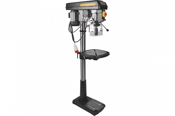 Jet JDP-17FT — профессиональный сверлильный станок для напольного размещения. Большой диапазон регулировки вертикального просвета за счёт подъёма/ опускания стола позволяет использовать его для работы с крупногабаритными заготовками, такими как готовые сборки изделий из металла или дерева.